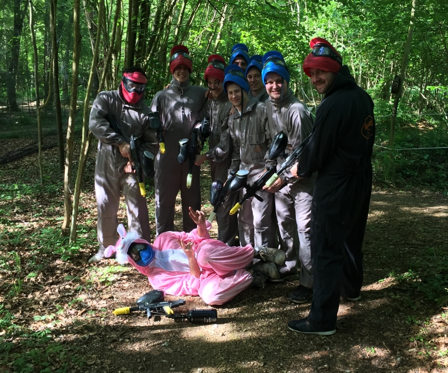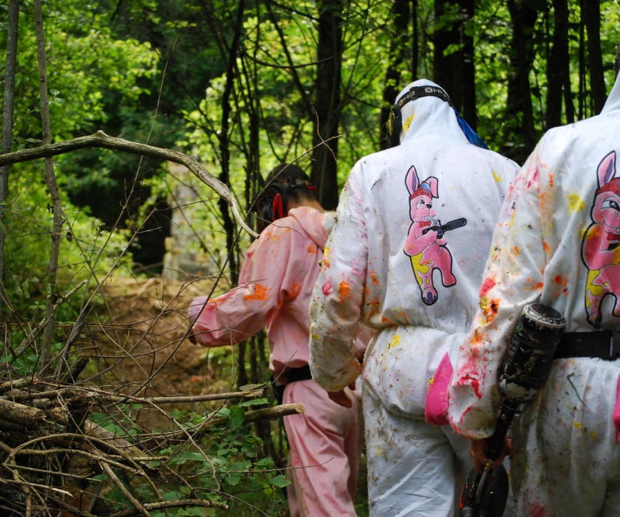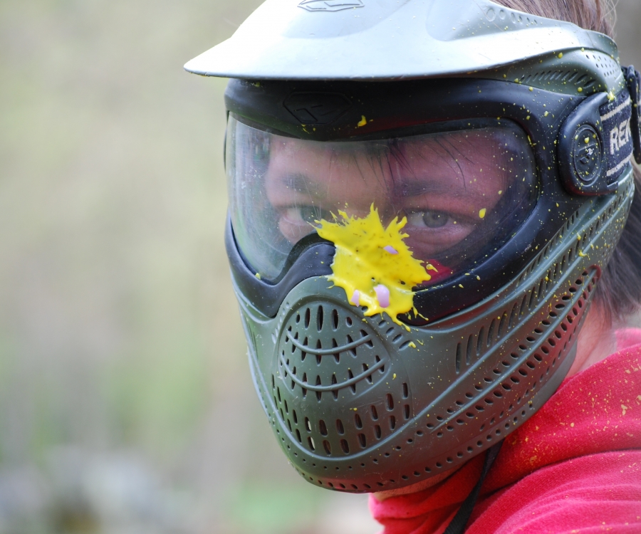 Et pour une protection maximale, les filles sont équipées d’un plastron, de gants et d’un protège cou spécial paintball !